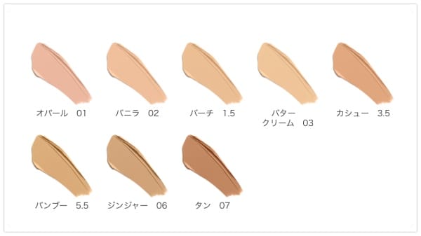 標準的な肌色の方の色選びだと、バタークリーム03かカシュー3.5を選んでみて下さい。バタークリーム03は標準色、そして、カシュー3.5は標準的な明るさで色味がピンクオークル系です。
