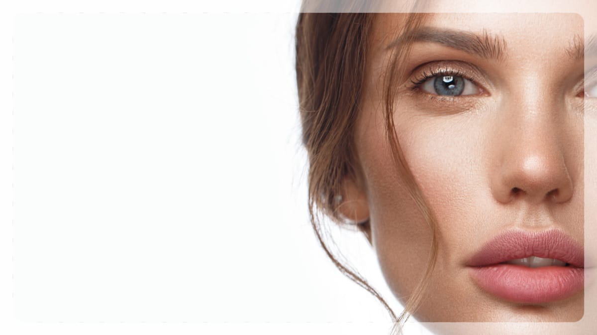 - 頬はこめかみから頬骨を通って小鼻わきまでのせる