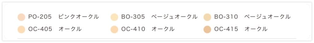 そして、標準的な肌色の方の色選びでは、OC-410・BO-310ですね。OC-410(標準色)は赤味と黄味の中間で自然な肌色です。BO-310は黄味寄りの色です。