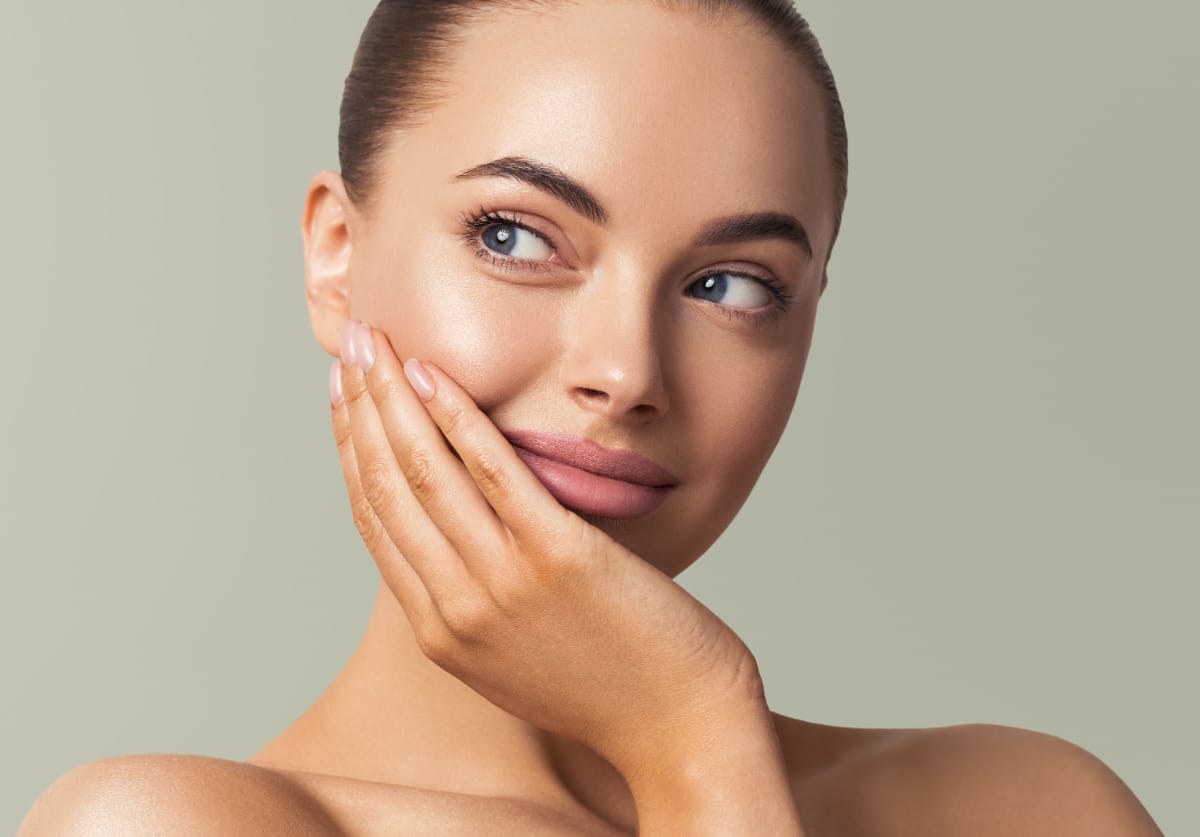 2. 頬の広い部分から乗せて指で放射線状に広げるように伸ばします。