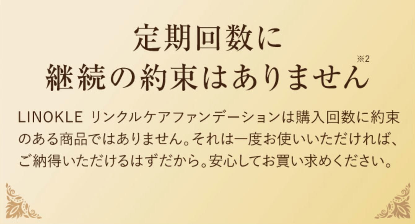 とよくある通販で問題になっている定期縛りかと思われるかもしれませんが、リノクルファンデーションには、定期の縛りが一切ないので、好きなタイミングで辞めることも可能です。